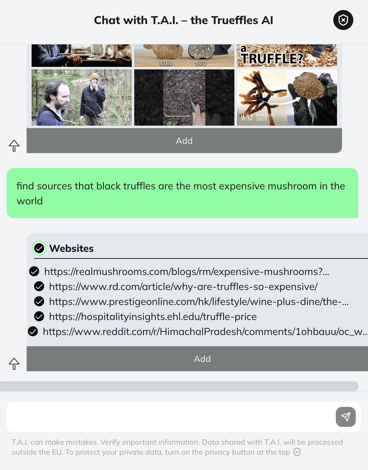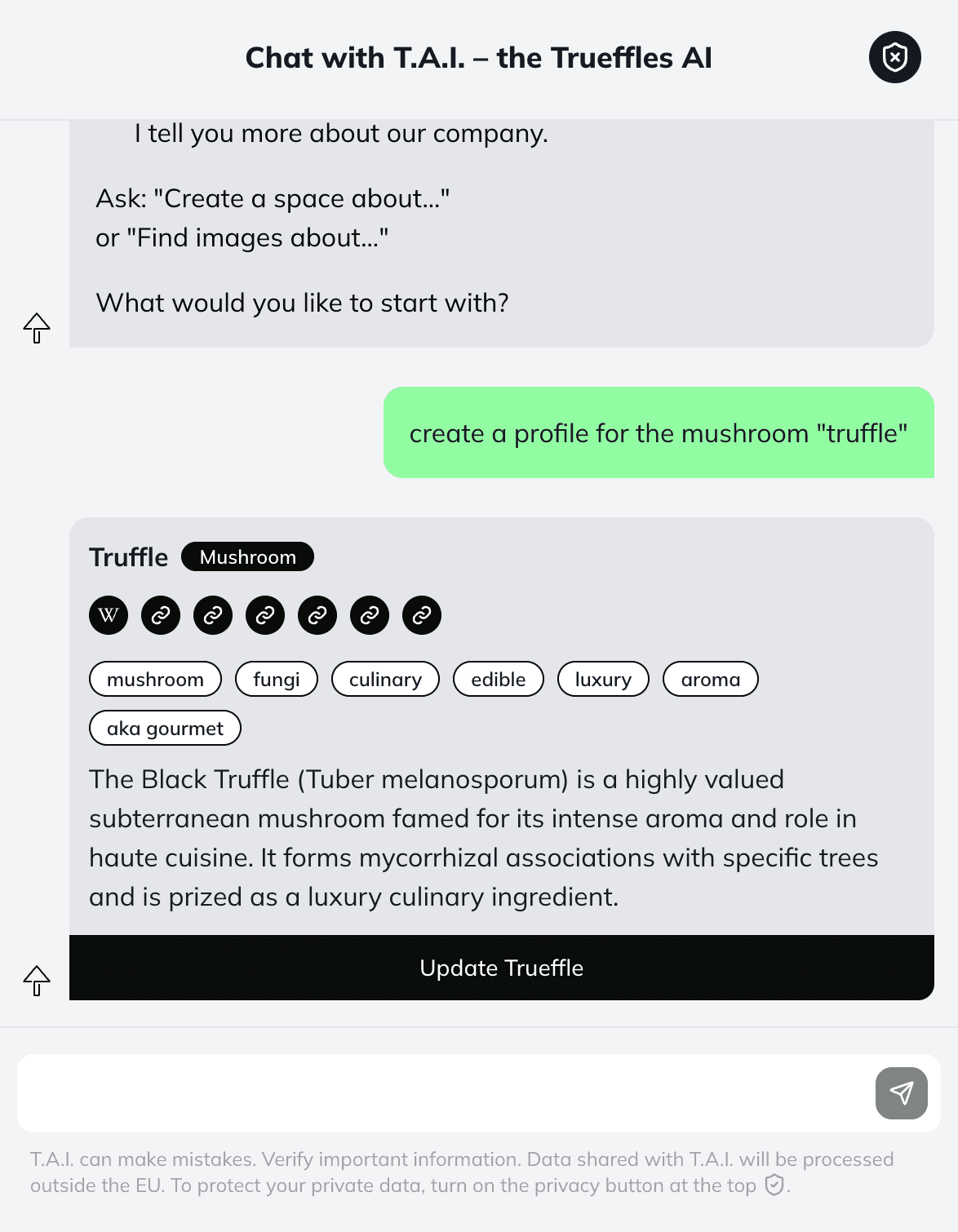Trueffles – the combination of "true" and "truffles" – stands for finding information that is not obvious at first glance and being able to directly check the underlying sources. What true or false – Trueffles – is, is mostly a philosophical question these days. What we can do about it, is to directly link the sources to the information we gather. This gives everyone the opportunity to find out easier, whether the source and the respective information is legitimate.